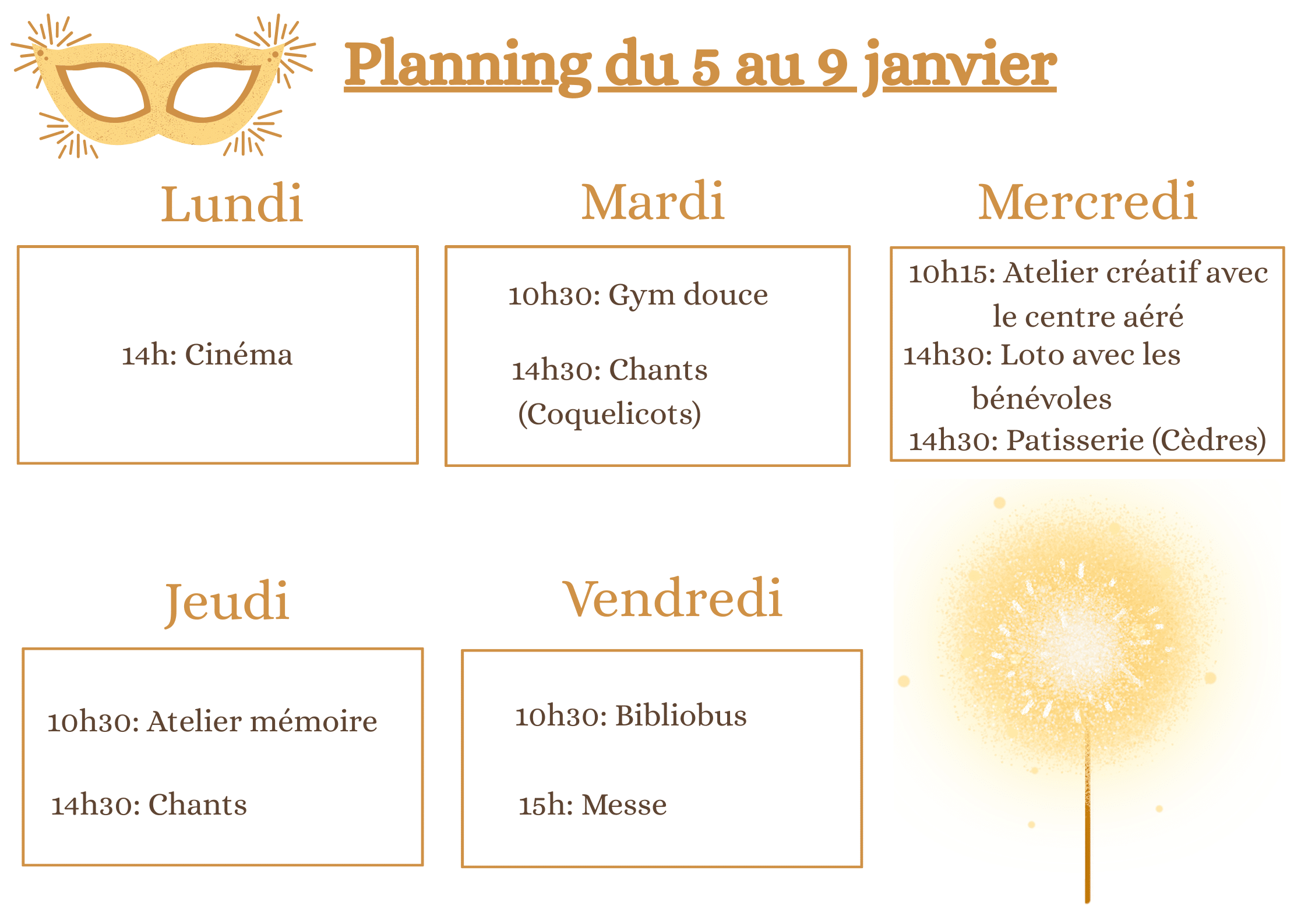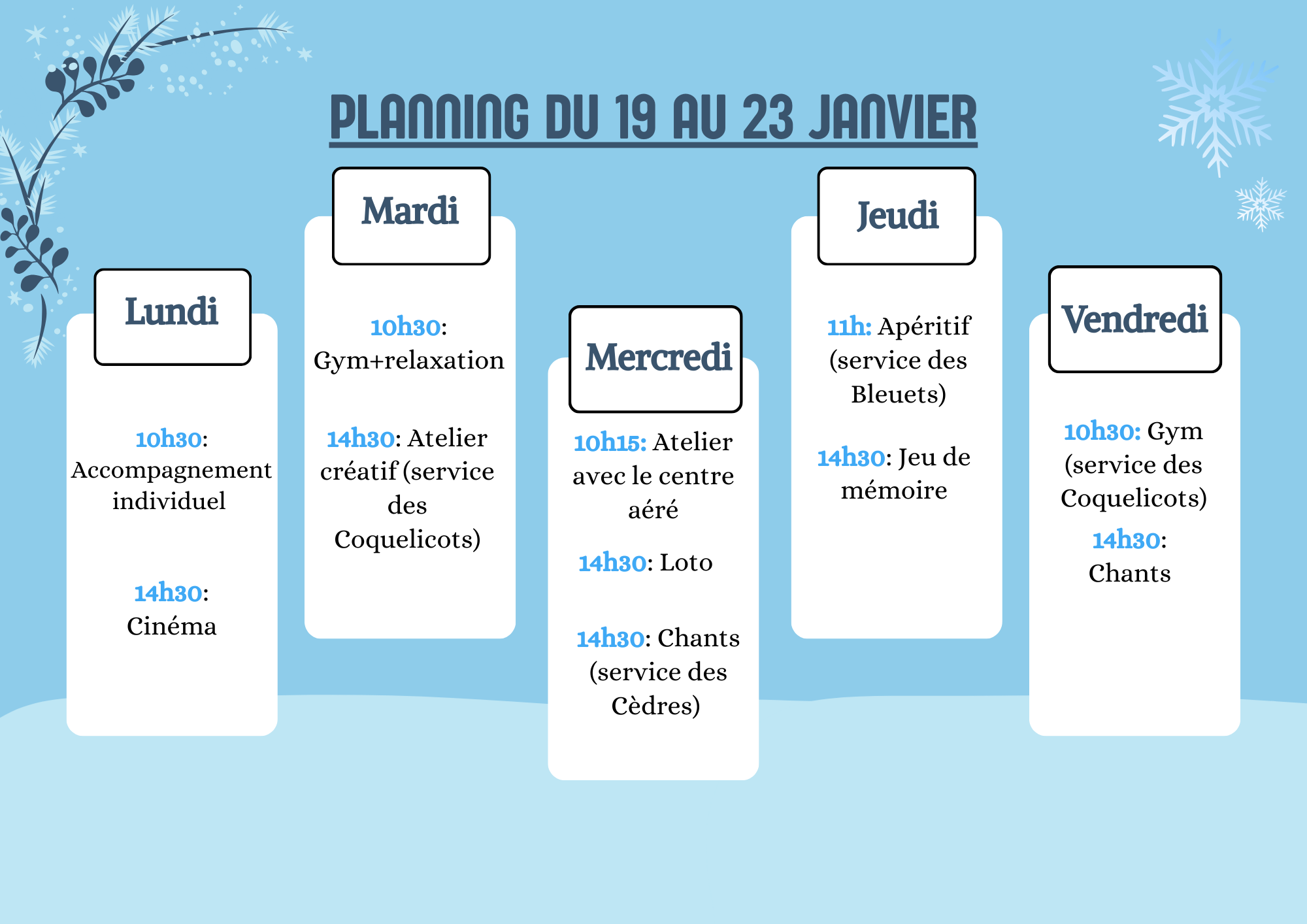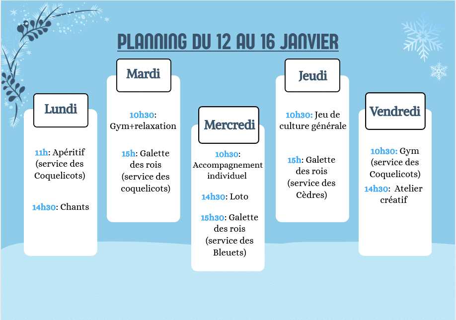 Le planning des animations 26 AU 30  janvier 2026 du Centre Sainte Elisabeth