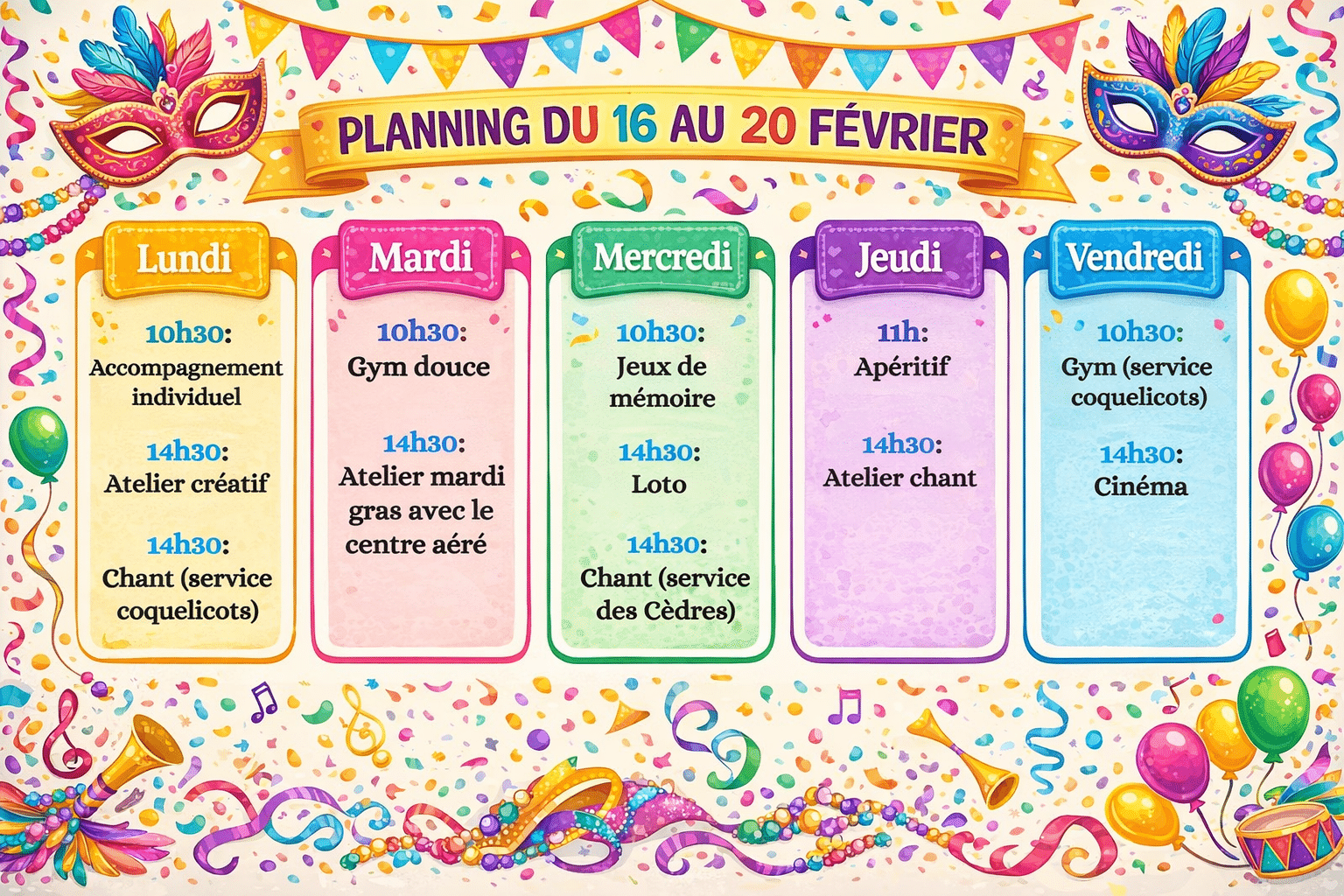 Le planning des animations
